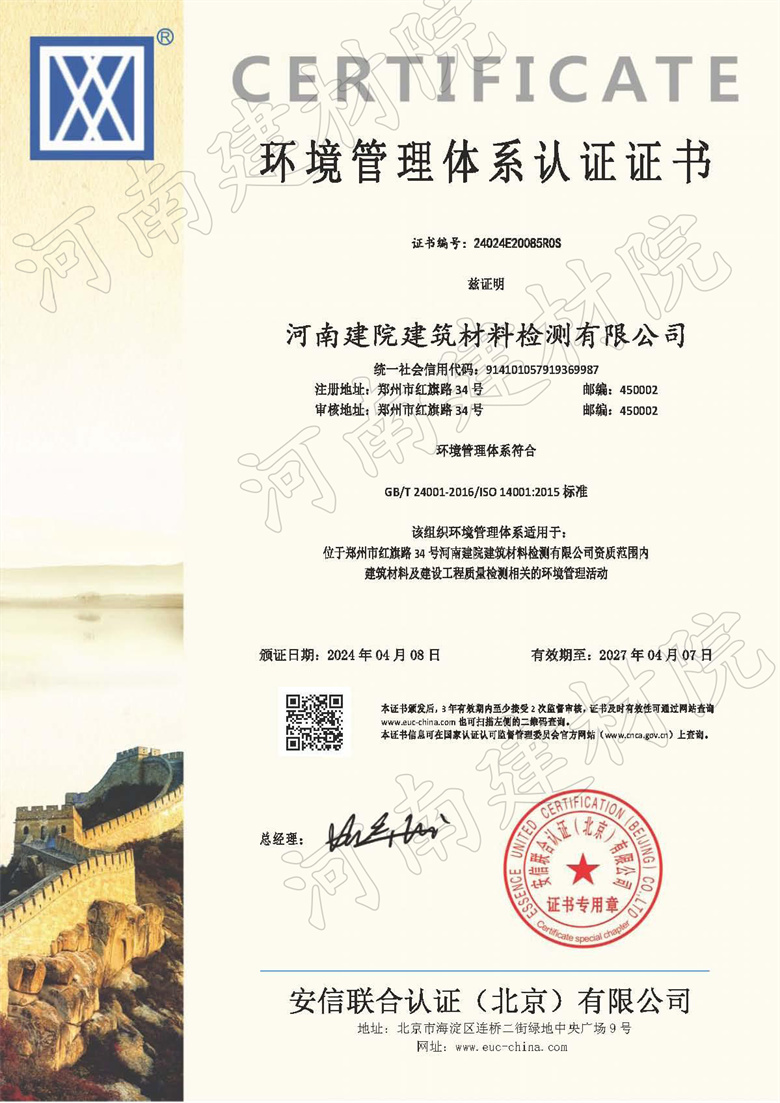 环境管理体系认证证书