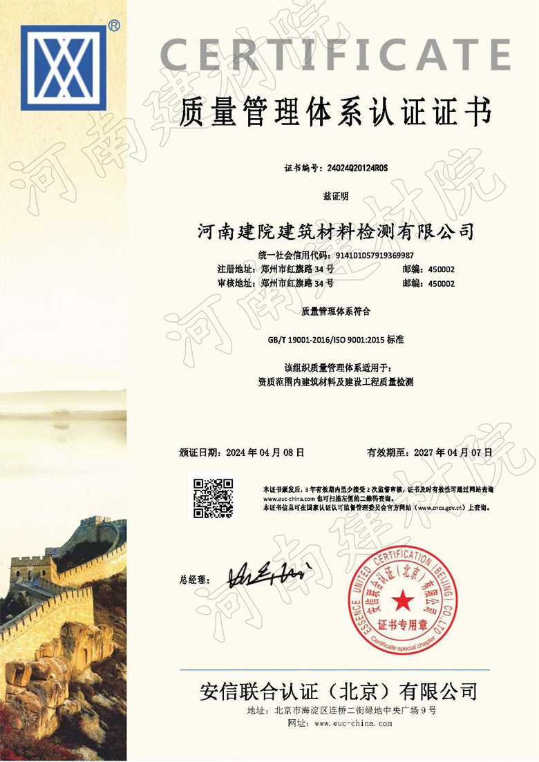 建设工程质量检测机构资质证书