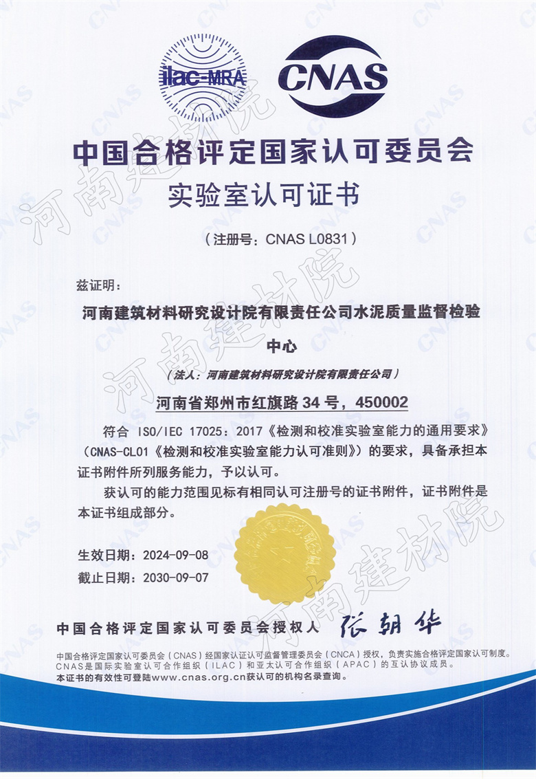 CNAS实验室认可证书—水泥质检...
