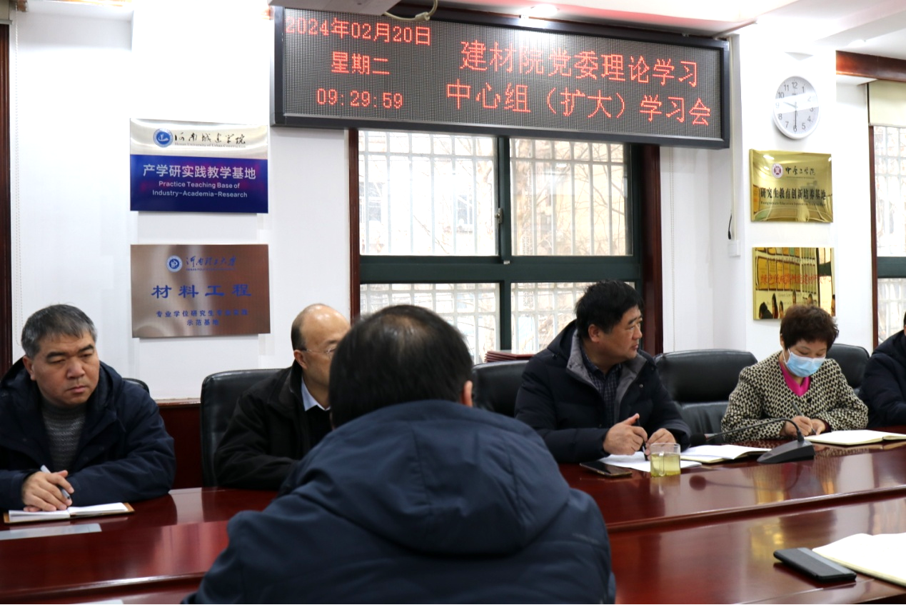 2月20日上午,建材院党委理论学习中心组召开(扩大)学习会议,专题学习省委书记楼阳生到省科学院、中原科技城调研时讲话精神。建材院党委书记尹青亚主持会议,党委委员、纪委委员、支部书记、中层干部、科研骨干共19人参加学习。
